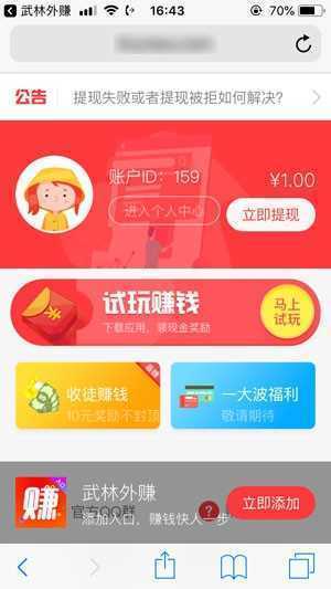 武林外赚试玩是一款汇集了海量优质试玩任务的手机赚钱软件。空闲时间来试玩游戏和应用,手机赚钱时代已来临,有了这款软件之后一款能够为自己赚取一份可观的线上赚钱软件,这里汇集超多优质的小游戏海量的各种任务每天更新,容易上手,超多的试玩任务等你来选择,帮你快速掌握赚钱技巧。