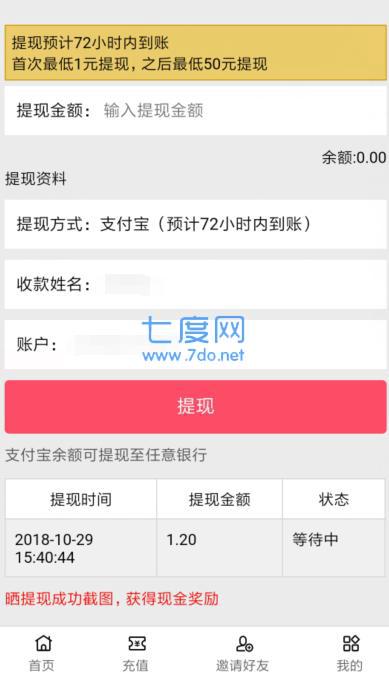每邀请一个好友就得到一元的推荐奖励,72小时内就能到帐;