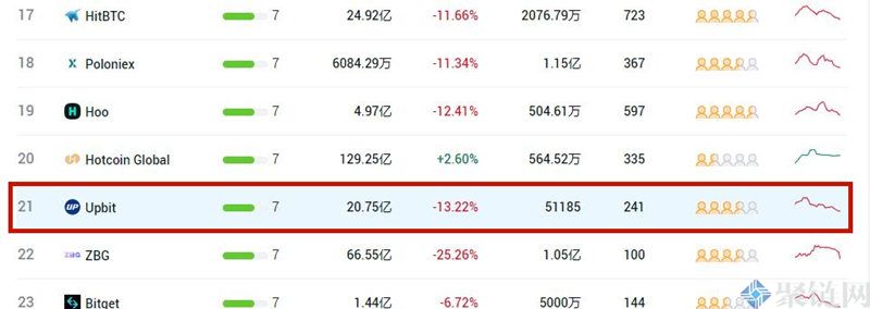 现在Upbit交易所在全球数字货币交易所中排在第21名,总资产实力达到了51185美元。