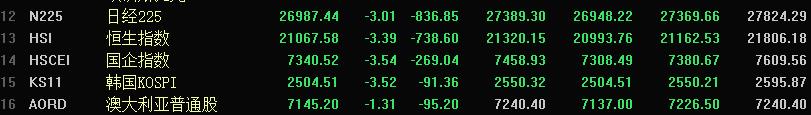 由于上周五美国股市大幅收跌,周一从已经结束交易的亚太市场来看,收盘情况大致如下。