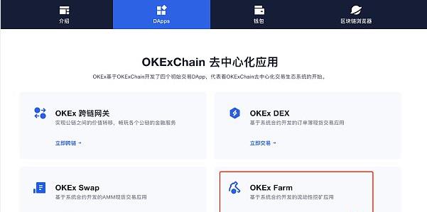 第一步:前往OKExChain页面 – DApps – OKEx Sawp -点击右上角「创建钱包」,如果已有OKExChain钱包可忽略;
