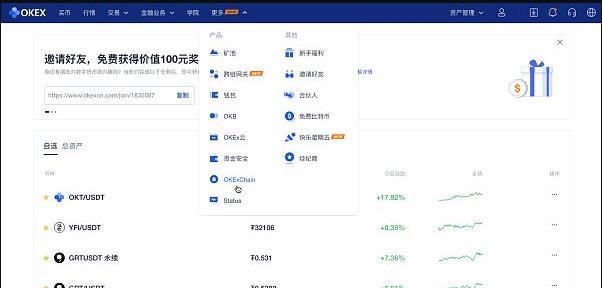 第二步:前往OKEx官网首页将OKT和USDT通过OKEx提币到您的OKExChain钱包;