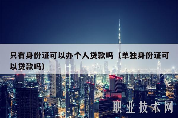 因为身份证只能证明本人的身份信息,因此就算办理的是消费贷款、小额贷款只凭借身份证也不能办理,因为银行及贷款机构为了控制风险,防止贷款款项无法收回,都会要求借款人提供信用证明、财产证明等材料,以此来判定借款人是否具备还款能力,如果有称只凭身份证就能贷款的,那一般都是套路贷等违法贷款。