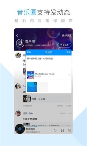 1、【融入社交让音乐更多惊喜互动】:可以点歌给qq/微信好友,述说你的音乐故事,可以将音乐分享到朋友圈、微博、空间,表达你的音乐心情,还可以聆听好友分享,邂逅音乐惊喜。