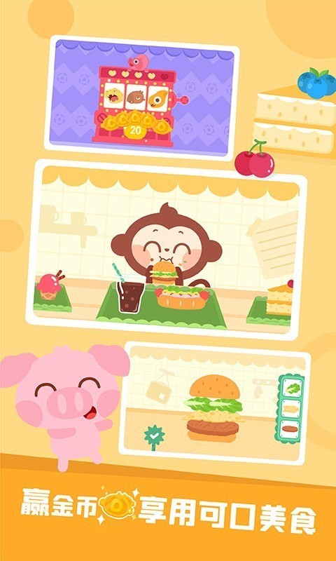 真实还原儿童游乐园游戏设施,钓鱼机、推金币、恐龙转转转等,游乐园经典游戏任你玩!