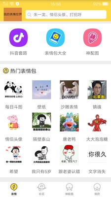 抖图动态表情包app是一款非常有趣的表情包制作神器,这里有海量表情包素材免费供大家使用,社交互动,斗图,还可以自定义选择表情包,添加文字等,感兴趣的小伙伴快来下载体验吧!