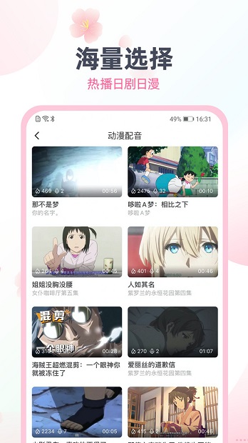 丰富的配音视频选择,经典老剧。目前的热门节目。不同风格。不同年龄段供你选择;每日更新的热门日剧日漫,好看又好学,你想要的都在这里了