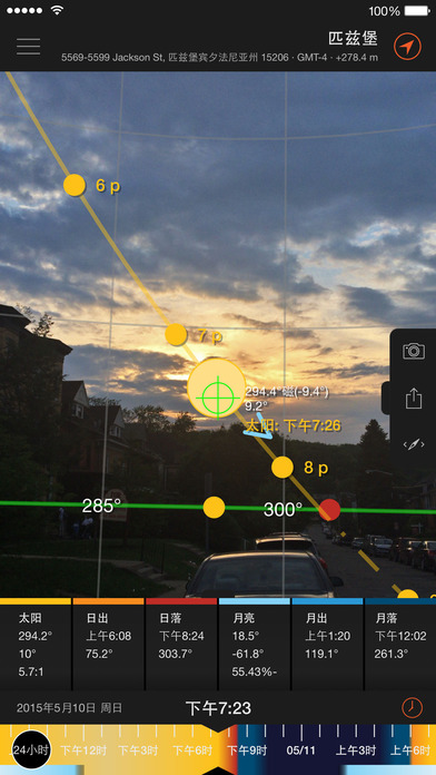 5.扩增实境AR摄影模式:利用装置的镜头,查看太阳或月亮何时会在天空中的某一位置,或何时会被建筑物挡住;