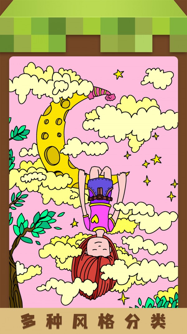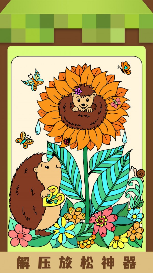 六大填色风格:动物、插画、任务、植物、卡通、对称,还有每日热推和挑战,随意点开一个分类,都是精美素材,让你爱上每个填色瞬间!