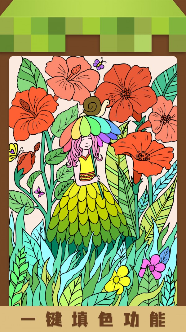 我的填色世界APP不仅支持放大缩小查看填色空间,还能一键填色哦,无论是手动填色还是一键填色,人性化设计让你爱上填色!