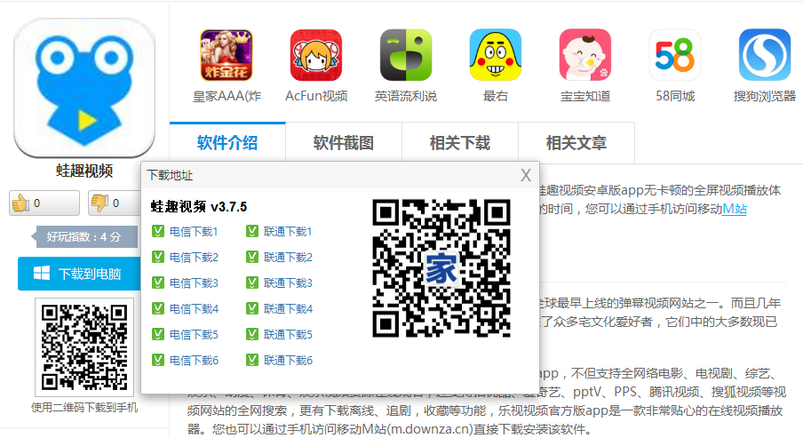 您有以下三种方式可以安装“蛙趣视频”APP: