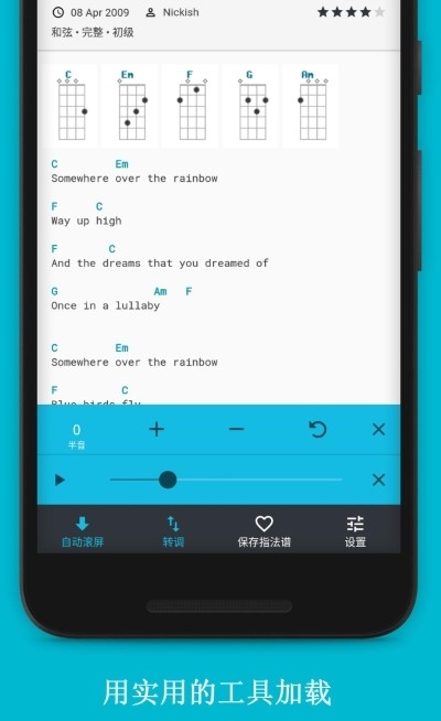 * 使用我们深受好评的尤克里里调音工具与和弦库内置应用程序(免费)