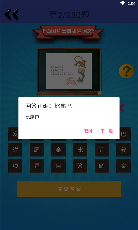 然后从应用提供的文字中选择正确的文字填入即可,应用的涉及面相当的广,