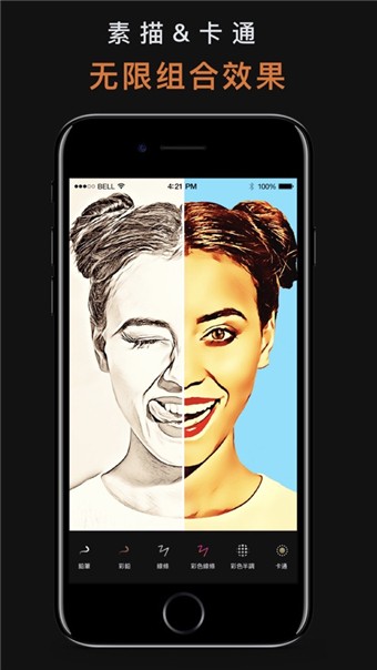1.有很多丰富的艺术模板,用户都可以套用在自己的照片上;