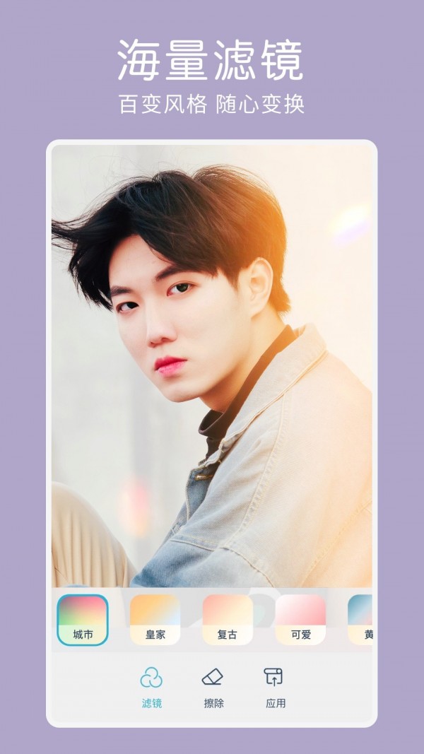 选择您喜欢的滤镜升级自拍效果,海量滤镜更能突显您的独特个人风格。