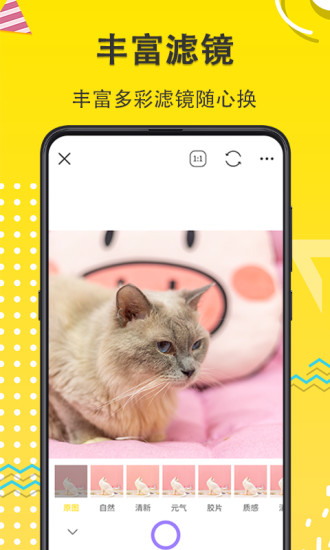 软件特点*海量贴纸任你挑选,可以搭配贴纸组合,让拍摄出来的图片瞬间萌萌哒;