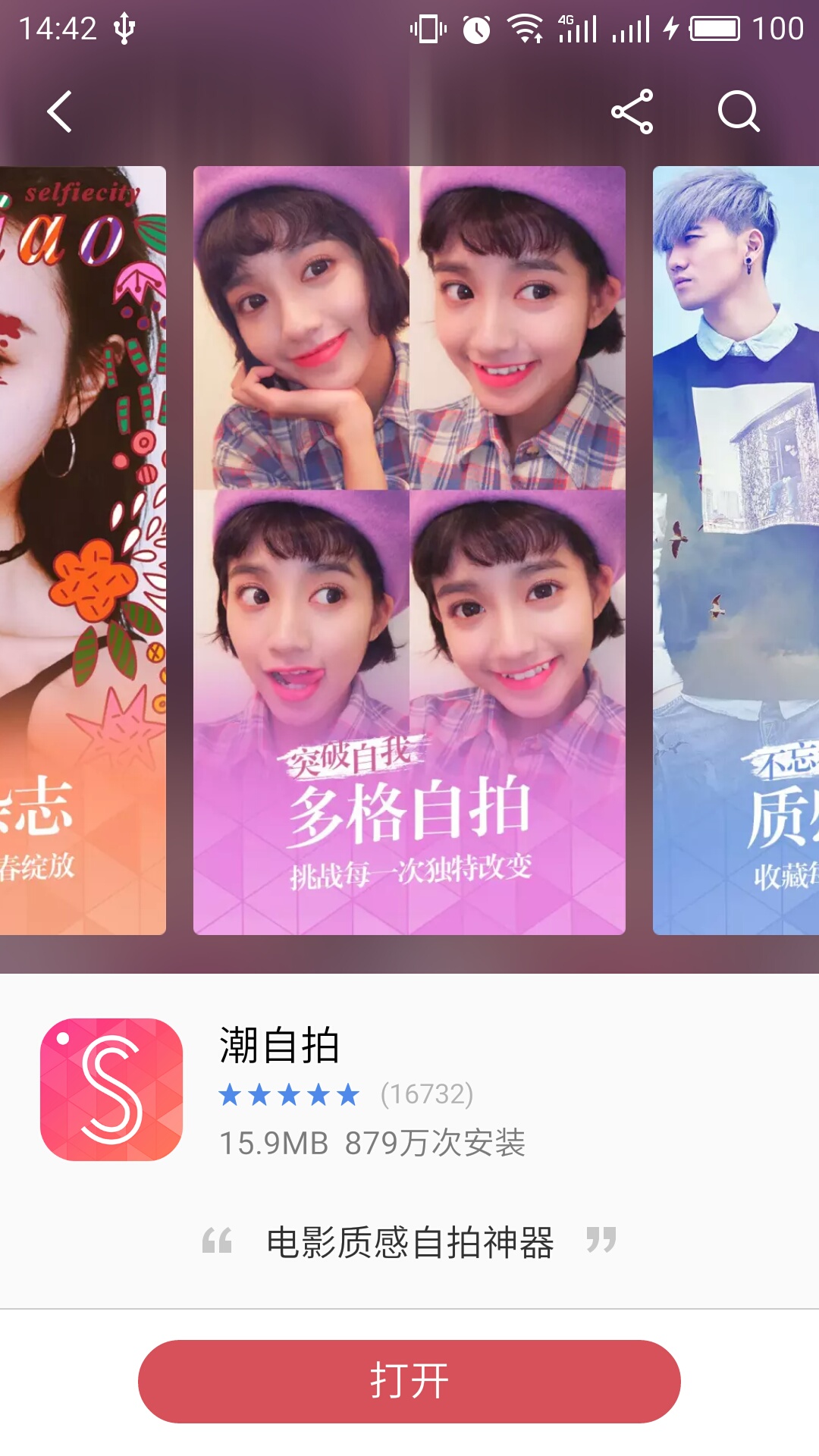第二种:进入手机的应用商店查找并安装“潮自拍”客户端(不同手机的应用商店名称不同,如小米手机应用商店名称为“小米商店”iOS用户可进入App Store进行下载)