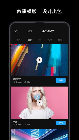 新增story模板:1980s、都市掠影、慵懒午后、摩登城市,支持运镜引导,释放拍摄创意。