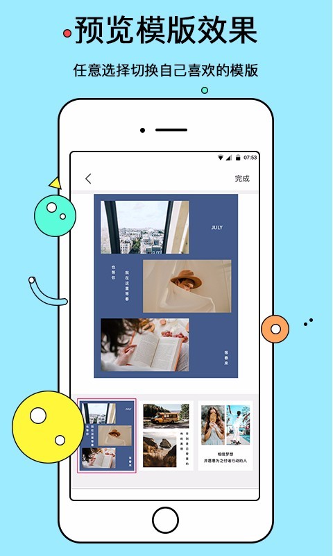 电子相册安卓版是杭州企盼信息科技有限公司开发的一款手机相册软件,电子相册app内有多个相册模板,用户可以根据模板去上次自己的相片,然后系统会自动给你生成一个属于自己的相册,电子相册app同步到云端,用户就能随时查看到自己手机里的相册。