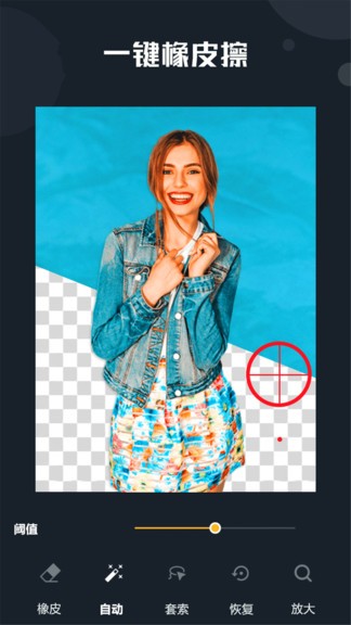 软件特点套索擦除:功效相当于PS套索,套索圈起的地区外被擦除