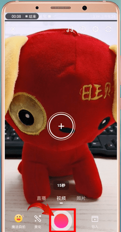 打开【美拍】APP,然后点击底部拍摄按钮,拍摄一段视频。