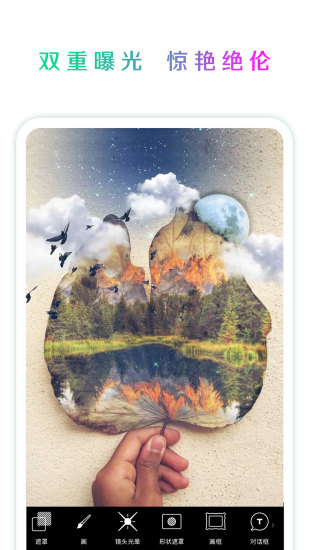7、照片相机,拥有多个动态滤镜和艺术蔽光框。