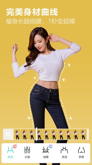 瘦身、大长腿、细腰、美肩、美臀、小头、修长腿,每条身体曲线都可以任意调节,1秒内成为完美身材模特。