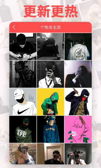 2、提供10大分类,200多个子类,分类清晰明确,快速定位自己的爱好。让你的头像与众不同,个性十足。