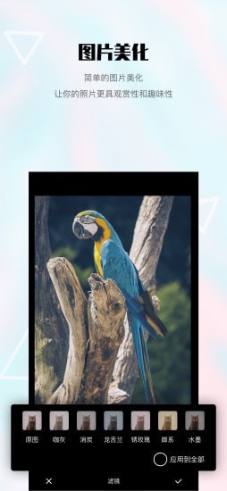 2. 滤镜:画面的整体风格和效果也可以随意调节,同时还能人像美颜;