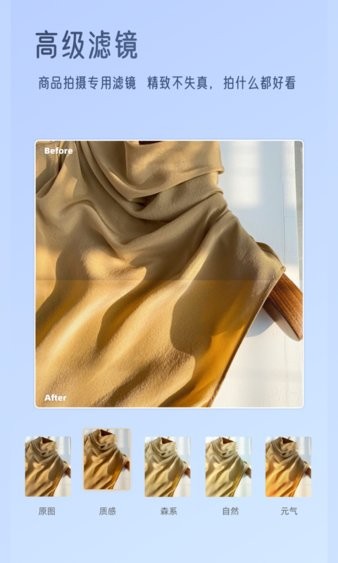 我拍衣最新版介绍我拍衣软件是专注于产品实时拍摄的相机app,是在线销售产品的神器!