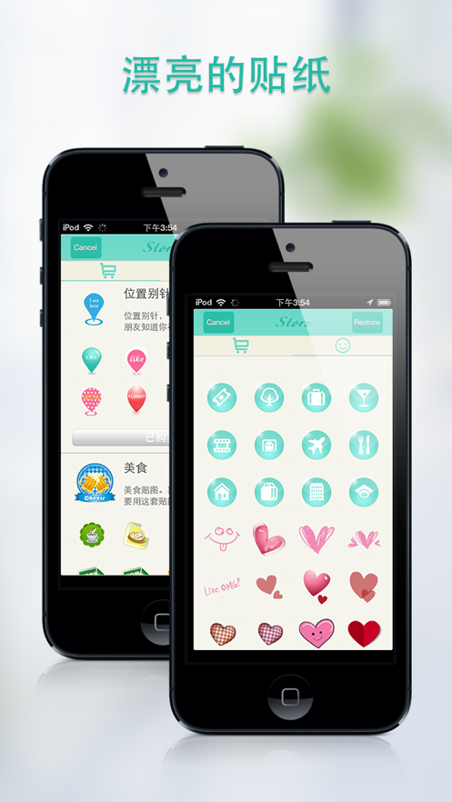 1、15个精心制作的位置皮肤;5种不同风格的贴纸,让你的照片与众不同;