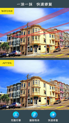 拍照担心被乱入?照片有水印?垃圾桶路标不美观?皮肤有瑕疵? 不用担心,删除物体,可以删除你认为破坏照片美观的任何对象。
