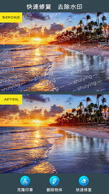 修图去水印app是一款能够快捷去掉图片水印的手机修图工具。修图去水印app为大家准备了非常多强大的修图功能,使用修图去水印app帮大家几分钟内快速处理完图片!