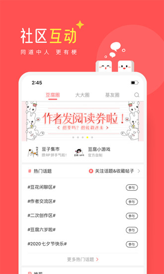 豆腐阅读app介绍豆腐阅读,专为腐女而生的社区。优质腐文阅读和推荐、大量腐女必看动漫视频免费随享。在这里能找到很多志趣相投的萌友,群腐更Happy!