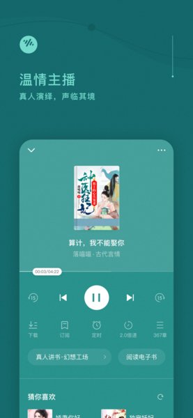 2、听书时有很多实用小功能可以选择哦,音量等设置很方便。