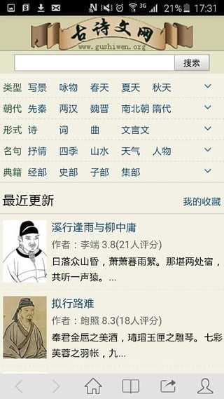 古诗文网手机版app是一款由古诗文网推出的移动终端,通过古诗文网手机版app你可以学习中国古代的诗歌散文等内容,对于中国文学爱好者来说非常的不错。