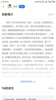 简读手机版以“弘扬中华优秀传统文化”为使命,以“为往圣继绝学”为初心,坚持致力于为C端用户提供古典诗词注释、译文、赏析、真人朗诵等多元化优秀传统文化学习功能。同时,也坚持为培训机构、公立学校等B端用户提供全方位的备课方案、作文智能批改等优质化、智能化服务。简读项目在基于古典诗词的学习,为普通用户、培训机构、公立学校、文学爱好者提供文学基础知识学习、文学素养提升服务的同时,也致力于文字AI算法的开发,让AI更懂中文,让中文更好地为社会发展起到应有的作用。