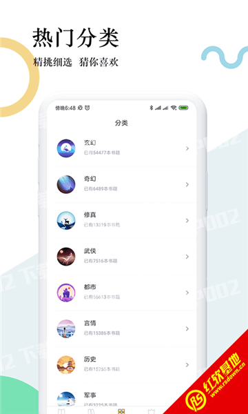 1.小说的类型非常丰富,有不同种类的小说可供选择,也分为不同的部分;
