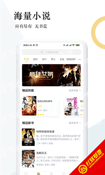 1、海量新书、免费完本、都市暧昧、霸道总裁言情、玄幻修仙、穿越重生、历史军事、内涵小说;