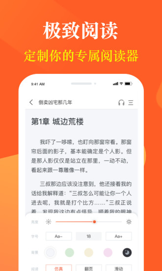 多种阅读背景颜色、翻页功能、字号,任性随心挑选,符合你的每一种阅读习惯!更有护眼模式保护夜晚看书的你!无论躺着坐着,体验随心阅读!