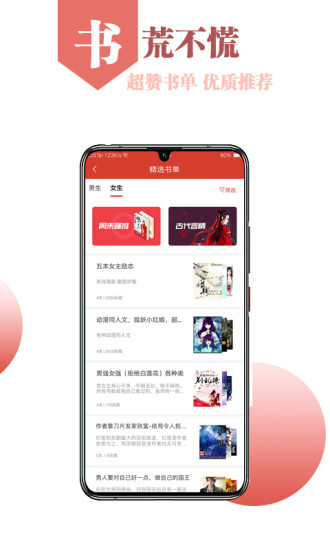 2、阅读功能:优秀阅读体验,护眼模式、仿真等多翻页效果、文字大小调节、变换阅读背景、阅读亮度调整、锁屏时间变换、批量下载、进度跳转、目录书签、报错功能。