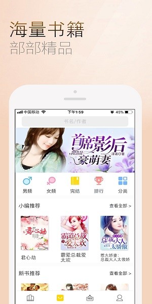 4.海量图书馆,书店图书种类繁多,品类齐全,包括玄幻、武侠、言情、都市、穿越、宫斗、历史、军事、流行、网络、经典小说。