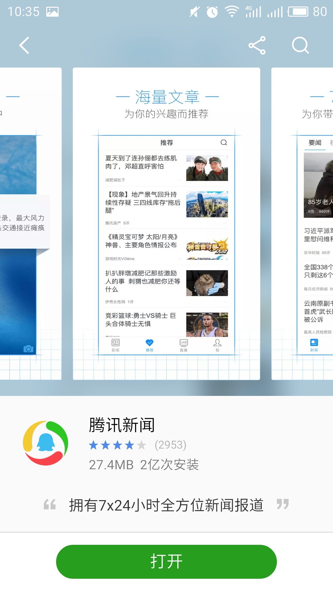 第二种:进入手机的应用商店查找并安装“腾讯新闻”客户端(不同手机的应用商店名称不同,如小米手机应用商店名称为“小米商店”iOS用户可进入App Store进行下载)