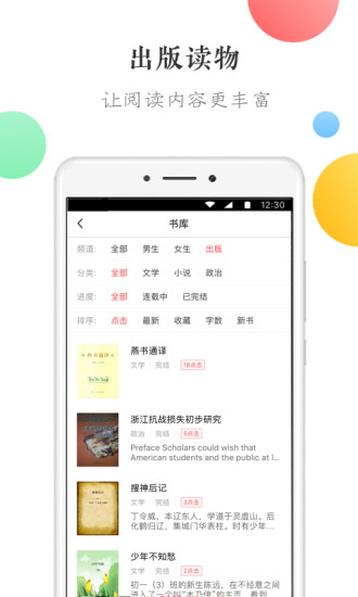 特色:正版精品网络原创小说,海量网文神作,囊括都市、历史、军事、女性、言情、灵异等多个分类,你想看的全部为你精彩呈现;