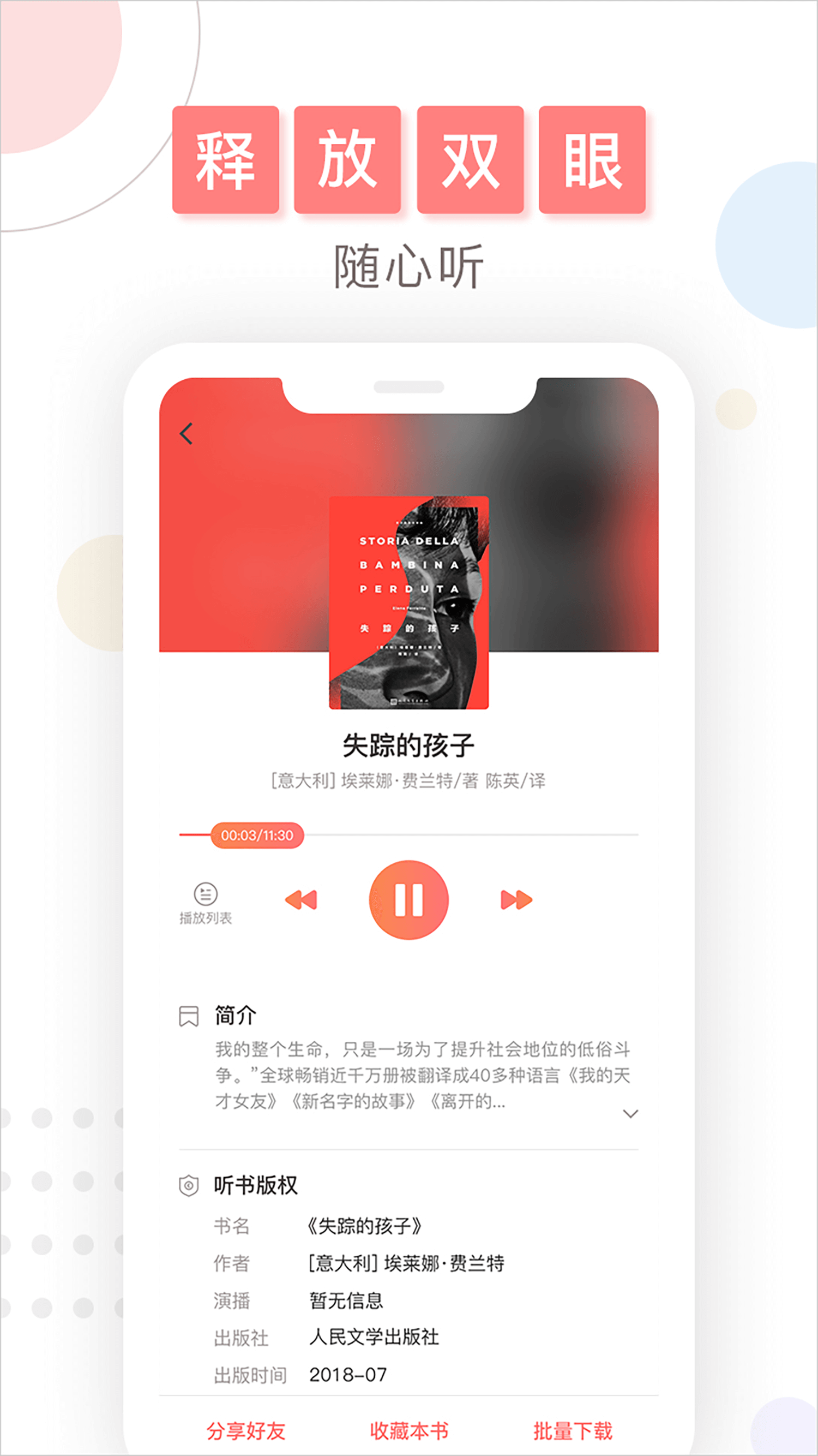 拥有海量的正版图书、动听的有声阅读,