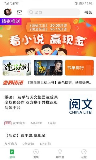 友乎最新版是款非常好用的小说阅读类型软件,此款软件功能十分强大,内部的多种小说资源丰富繁多,并且所有小说都可免费查看了解,软件还会根据你的阅读习惯来为你定制专属书架,上面的系列书籍都是你可能喜欢的,用户们还可以在内结识到各种书友,在线上沟通交流也是可以的。