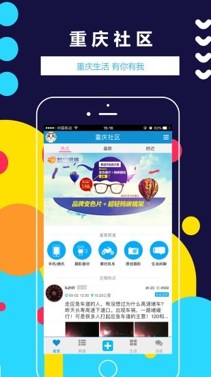 重庆社区app是一款专属双喜临门重庆市的社区交友论坛,为重庆市人民提供一条龙的生活服务,娱乐有闲聊灌水,聊天交友;其他还有求职招聘,婚嫁情感等。大重庆社区app提供当地最新新闻热点,让热门随时掌握第一手资讯,从而全方位了解重庆,热爱重庆。
