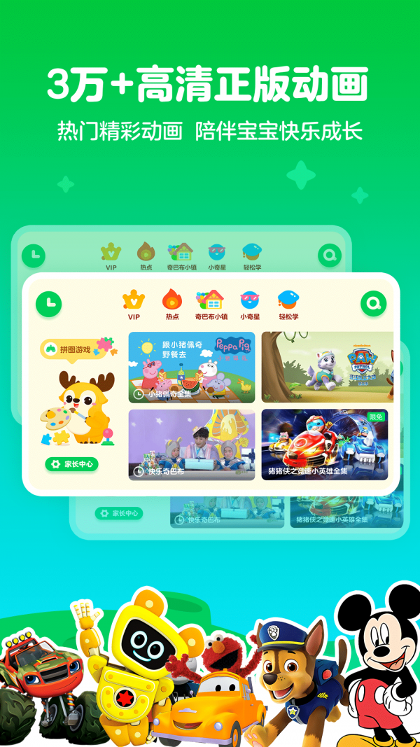 爱奇艺奇巴布app是一款由爱奇艺专为0-12岁小朋友精心设计的儿童应用,爱奇艺奇巴布app汇聚全球优质内容,涵盖儿歌、英语、故事、早教、动画、电影等类型,寓教于乐,陪伴孩子智趣成长。爱奇艺奇巴布app内包含《汪汪队立大功 第4季》、《巴巴爸爸》等上百部双语益智动画全网独播!