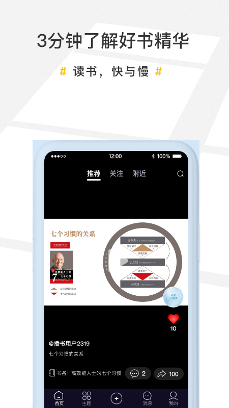 播书app,一款专属分享知识的短视频平台。软件通过短视频的形式,为用户智能推送各种书籍以及读书感悟,帮助培养阅读习惯,传播优秀的读书文化,3分钟简介,帮助了解一本书的魅力。