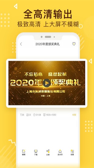 制作的视频/海报皆为高清分辨率,支持转存至电脑端展示,720分辨率让作品在高清电视、投影仪下播放无压力。